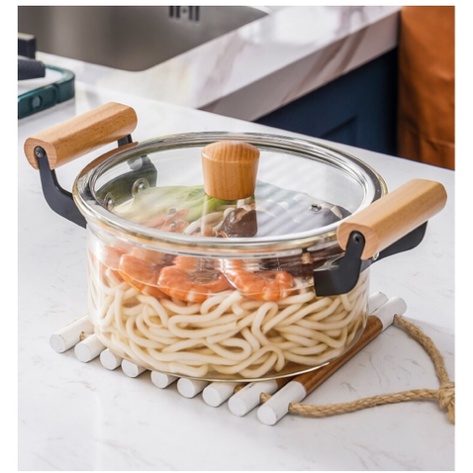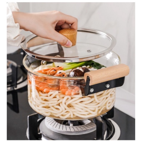 Top Point High Borosilicate Glass Soup Pot with Wooden Lid & Handle – Heat Resistant, Transparent Design